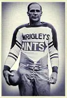 The first game was held Thanksgiving Day in 1933, an exhibition contest against the Rochester Arpeakos. A crowd of 10,000 attended the game to watch Conacher play his first competitive football game in Canada in ten years. He did not disappoint, scoring two touchdowns and setting up a third for the Chefs, and was hailed as the game's star despite an 18–15 loss.[40] Toronto lost a return match in Rochester, but in the third and final game of their season, the Chefs defeated a team from Buffalo at Toronto by a score of 18–0.[41] Conacher was again the star, rushing for two touchdowns and scoring 13 of his team's points.[42] He organized the team for a second year in 1934, known as the Wrigley Aromints due to new sponsorship, and again played an exhibition schedule as the team remained unaffiliated with any league.[43] The team again played three games, winning all three. However, at the age of 34 years, Conacher found that the game was too hard on his body physically, and neither he nor his team returned for a third season.[44]