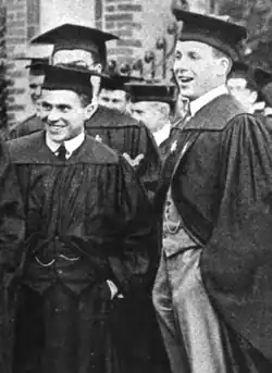 Graduating cum laude in English[20] in June 1915, he was selected to compose both the Class Poem and the Baccalaurete Hymn.[6] His poem was "a stirring lyric adjuring all Harvard men in the present crisis of civilization [i.e. World War I] to stand for their historic ideals of freedom":[21]
