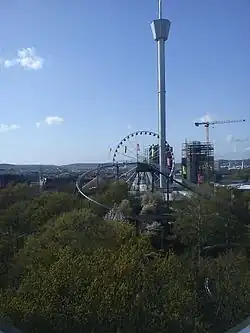 - AtmosFear – originally an observation tower that was built in 1990, but was converted into a 116 m (381 ft) drop tower in 2011; height limit 140 cm (4 ft 7 in). Intamin. The longest free fall in Europe.