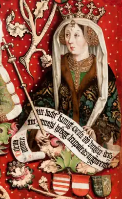| Elizabeth of Luxembourg [5] | Sigismund, Holy Roman Emperor (Luxemburg) | 7 October 1409 | 1422 | 27 October 1439 husband's death | 25 December 1442 | Albert V | |