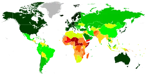 | ≥ 0.900 0.850–0.899 0.800–0.849 0.750–0.799 0.700–0.749 | 0.650–0.699 0.600–0.649 0.550–0.599 0.500–0.549 0.450–0.499 | 0.400–0.449 ≤ 0.399 Data unavailable |