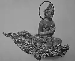 | Bosatsu on Clouds 木造雲中供養菩薩像 mokuzō unchū kuyō bosatsu-zō | Byōdō-in | Heian period (1053) | 52 | ![]() | 34°53′21″N 135°48′28″E / 34.889277°N 135.807672°E | Sculptures | National (NT) | [19] | |