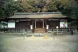 | Uji Jinja Honden 宇治神社本殿 Uji Jinja honden | Uji Jinja | late Kamakura period | 1 | ![]() | 34°53′28″N 135°48′39″E / 34.89107759°N 135.81072842°E | Structures | National (ICP) | [7] | |