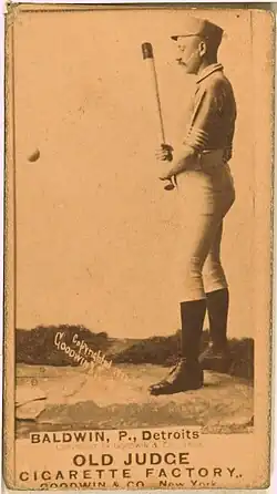The first game in Detroit Wolverines history was played on May 2, 1881, against the Buffalo Bisons.[4] George Derby was the Opening Day starting pitcher in that game, which the Wolverines lost by a score of 6–5.[4] The Wolverines' last Opening Day game was played on April 20, 1888, against the Pittsburgh Alleghenys (now known as the Pittsburgh Pirates).[5] Charlie Getzien was the Wolverines' Opening Day starting pitcher in that game, which the Wolverines lost by a score of 5–2.[5] The Wolverines were the National League champions in 1887, and went on to win the 19th century version of the World Series by defeating the American Association (19th century) champion St. Louis Browns.[1][6] Lady Baldwin was the Wolverines' Opening Day starting pitcher that year, in a game the Wolverines won by a score of 4–3 against the Indianapolis Hoosiers.[7] Stump Weidman made three Opening Day starts for the Wolverines, more than any other pitcher, in 1883, 1884 and 1885.[8][9][10] Derby and Baldwin each made two Opening Day starts.[4][7][11][12]