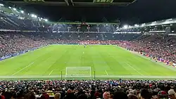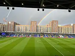 - ^ Due to safety standarts, one of the stands of the stadium is permanently closed for accepting spectators in ticketed events, reducing the operating capactity by 9,255 to approximately 25,580.[9]
