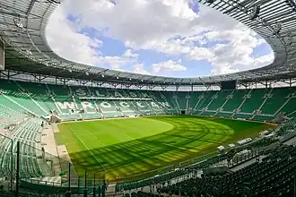 - ^ Wrocław 2012 – Nowy Stadion We Wrocławiu Archived 30 April 2010 at the Wayback Machine Net number of seats under roof, Polish league: 44,416. Retrieved 2 January 2010.