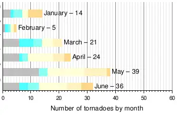 - Note: Unrated tornadoes are not included on the graphs but are included in the monthly totals