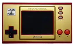 This limited 35th Anniversary Edition Game & Watch version of Super Mario Bros. has a full-color pixel screen. It has several modes: NES versions of Super Mario Bros. and Super Mario Bros.: The Lost Levels; another new Mario-themed variant of Ball; and traditional Game & Watch clock features. The size and shape of the hardware is similar to the Wide Screen series, plus a cross-shaped D-pad like the Donkey Kong model. It was released on November 13, 2020.[70][30]
