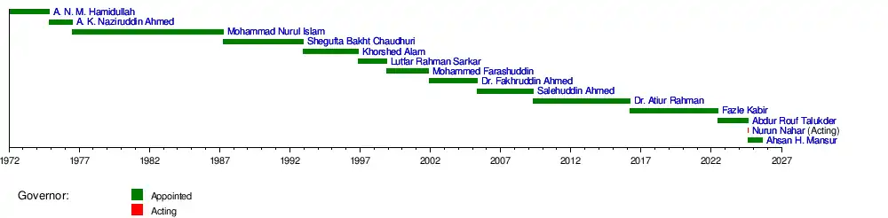 | 13 | Ahsan H. Mansur (born 1950/51) | | 13 August 2024 | Incumbent | 364 days | [2] |
