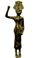 | Pinikir Pirengir[201] | ![]() | Šamuha[202] | Elamite[203] | Ishtar,[204] Ninsianna (Mesopotamian)[205] | Pinikir was a goddess of Elamite origin[203] worshiped by the western Hurrians.[17] It is possible that she was a divine representation of the planet Venus.[201] She was referred to with epithets such as "Lady of the Lands," "Lady of Gods and Kings," "Queen of Heaven"[206] and "Elamite goddess."[207] She has been characterized as a "cosmopolitan deity" due to being worshiped in various locations all across the Ancient Near East, from modern Turkey to Iran.[204] Pinikir's gender in Hurrian texts is not entirely consistent and in some offering lists he is counted among the male deities.[204] |