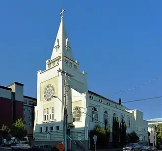 | St. Paulus Lutheran Church | | 1894 built 1982 NRHP | 999 Eddy Street 37°46′56″N 122°25′21″W / 37.78222°N 122.42250°W / 37.78222; -122.42250 (St. Paulus Lutheran Church) | San Francisco, California | Its 1894-built Late Gothic Revival building appeared in Vertigo. It was NRHP- and SFDL-listed but burned down in 1995. |