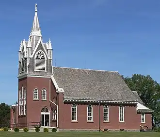 | Dansk Evangelical Lutheran Kirke | | 1910 built 1988 NRHP | 400 W. Capitol Dr. 43°06′09″N 88°21′10″W / 43.10250°N 88.35278°W / 43.10250; -88.35278 (Dansk Evangelical Lutheran Kirke) | Hartland, Wisconsin | Congregation with services in Danish until 1931; church building has elements of Late Gothic Revival and Romanesque Revival. |