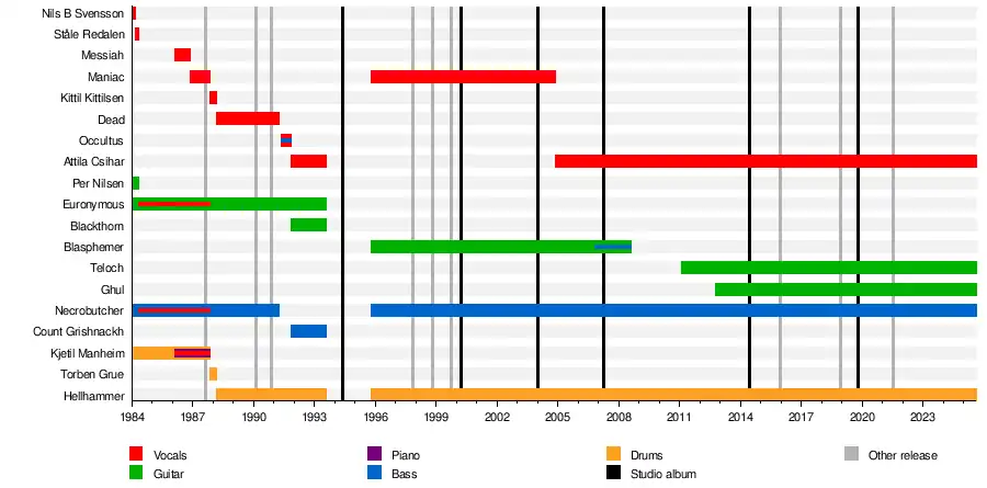 | Euronymous (Øystein Aarseth) | 1984–1993 (until his death) |