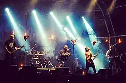 Mayhem is a Norwegian black metal band from Oslo. Formed in 1984, the group originally featured guitarist Øystein "Euronymous" Aarseth (originally known as "Destructor"), bassist and vocalist[1] Jørn "Necrobutcher" Stubberud and drummer Kjetil Manheim. The band's current lineup includes Necrobutcher (who rejoined in 1995 after originally leaving in 1991), drummer Jan Axel "Hellhammer" Blomberg (since 1988), vocalist Attila Csihar (first from 1992 to 1993, and since 2004), and guitarists Morten Bergeton "Teloch" Iversen (since 2011) and Charles "Ghul" Hedger (since 2012).