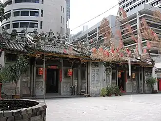 | Yueh Hai Ching Temple[53] | Downtown Core | Founded in 1826 by Teochew clan, moved 1855, rebuilt 1895 and 1997. Also known as the Temple of the Calm Sea, Yuehaiqing Miao, and Wak Hai Cheng Bio; consist of two main shrines, one dedicated to Mazu and the other shrine dedicated to the Xuantian Shangdi[53] |