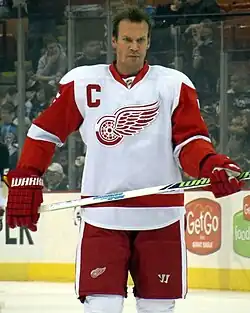 Notes ^ Stan Mikita was born in First Slovak Republic , in what is now Slovakia . He moved to Canada when he was young, and he played internationally for Canada. ^ Peter Stastny was born in Czechoslovakia , in what is now Slovakia . He played internationally with three countries (in order): Czechoslovakia, Canada , and Slovakia. ^ Tomas Sandstrom was born in Finland , but played internationally for Sweden . ^ Anze Kopitar was born in SFR Yugoslavia , in what is now Slovenia . He represents Slovenia internationally. ^ Jan Mursak was born in SFR Yugoslavia , in what is now Slovenia . He represents Slovenia internationally. ^ Dany Heatley was born in West Germany , in what is now Germany . His Canadian father retired from hockey and the family moved to Canada when Heatley was still a toddler. Heatley plays for Canada internationally. ^ Walt Tkaczuk was born in Allied-occupied Germany in 1947. His birthplace lies within the territory that became the Federal Republic of Germany (West Germany ) in 1949. His family moved to Canada when he was two years old. ^ Willie Huber was born in West Germany , in what is now Germany . He played internationally for Canada . ^ Mikhail Grabovski was born to Belarusian parents in East Germany , in what is now Germany . His family returned to Belarus when he was three years old, and he plays for that country internationally. ^ Steve Thomas was born in England , United Kingdom , but represented Canada internationally. ^ Owen Nolan was born in Northern Ireland , United Kingdom , but was raised in Canada , and played for Canada internationally. ^ Ken Hodge was born in England , United Kingdom , but was raised in Canada . ^ Steve Smith was born in Scotland , United Kingdom , but was raised in Canada , and played for Canada internationally. ^ Peter Lee was born in England , United Kingdom , but was raised in Canada . ^ Jim McFadden was born in what is now Northern Ireland , United Kingdom , but was raised in Canada . ^ Adam Brown was born in Scotland , United Kingdom , but was raised in Canada . ^ Jim Conacher was born in Scotland , United Kingdom , but was raised in Canada . ^ Tommy Anderson was born in Scotland , United Kingdom , but was raised in Canada . ^ Red Beattie was born in England , United Kingdom , but was raised in Canada . ^ Peter Bondra was born in the Ukrainian SSR of the former Soviet Union . However, his family moved to their native Czechoslovakia (now Slovakia ) when he was young, and he represented Slovakia internationally. ^ Alexei Zhitnik was born in the Ukrainian SSR of the former Soviet Union , and he represented the Soviet Union, the CIS /Unified Team , and Russia internationally. ^ Johnny Gottselig was born in the Russian Empire , in area that is now Ukraine. He was raised in Canada . ^ Oleg Tverdovsky was born in the Ukrainian SSR of the former Soviet Union , and represented Russia internationally. ^ Nikolay Zherdev was born in the Ukrainian SSR of the former Soviet Union , and represents Russia internationally. ^ Anton Babchuk was born in the Ukrainian SSR of the former Soviet Union , and represents Russia internationally. ^ Vitaly Vishnevskiy was born in the Ukrainian SSR of the former Soviet Union , and represents Russia internationally. ^ Ivan Boldirev was born in SFR Yugoslavia , in what is now Serbia . He moved to Canada in his youth. ^ Stan Smrke was born in the Kingdom of Yugoslavia , in what is now Serbia . He was raised in Canada . ^ Andre Burakovsky was born in Austria , but was raised in Sweden . He plays for Sweden internationally ^ Marko Dano was born in Austria , but was raised in Slovakia . He plays for Slovakia internationally ^ Mark Hardy was born in Switzerland , but was raised in Canada , and played for Canada internationally. ^ Mason McTavish was born in Switzerland , but plays for Canada internationally. ^ Paul MacLean was born in France , but was raised in Canada . ^ Xavier Ouellet was born in France , but was raised in Canada . He plays for Canada internationally. ^ Bo Groulx was born in France , but was raised in Canada . ^ Kalle Kossila was born in France , but was raised in Finland . He plays for Finland internationally. ^ Dainius Zubrus was born in the Lithuanian SSR , in what is now Lithuania . He has played internationally for both Russia and Lithuania. ^ Darius Kasparaitis was born in the Lithuanian SSR , in what is now Lithuania . In international competitions, he has played for the Soviet Union , the CIS /Unified Team, Russia , and Lithuania. ^ Sandis Ozolinsh was born in the Latvian SSR , in what is now Latvia . Internationally, he played with three countries (in order): the Soviet Union, the Commonwealth of Independent States , and Latvia. ^ Sergei Zholtok was born in the Latvian SSR , in what is now Latvia . Internationally, he played with three countries (in order): the Soviet Union, the Commonwealth of Independent States , and Latvia. ^ Viktor Tikhonov was born in the Latvian SSR , in what is now Latvia . He represents Russia internationally. ^ Poul Popiel was born in Denmark but moved to Canada as a child and lost his Danish citizenship when he became an American citizen. ^ Alexander Perezhogin was born in the Kazakh SSR of the former Soviet Union , but represents Russia internationally. ^ Pavel Vorobiev was born in the Kazakh SSR of the former Soviet Union , but has represented Russia internationally. ^ Evgeni Nabokov was born in the Kazakh SSR of the former Soviet Union , but has represented Kazakhstan and Russia internationally. ^ Viktor Antipin was born in Kazakhstan , but represents Russia internationally. ^ Anton Khudobin was born in the Kazakh SSR of the former Soviet Union , but represents Russia internationally. ^ Willi Plett was born in Paraguay , but was raised in Canada . ^ Wojtek Wolski was born in Poland , but was raised in Canada . ^ Nick Harbaruk was born in Poland , but was raised in Canada . ^ Joe Jerwa was born in the Russian Empire , in what is now Poland . He was raised in Canada 