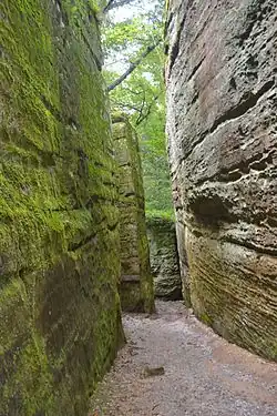 | Giant City Geological Area | | 1980 | 37°36′18″N 89°11′18″W / 37.60500°N 89.18833°W | Union | State | A part of Giant City State Park, the Geological Area is characterized by joint-bound sandstone blocks of the Pennsylvanian age, with examples of gravity sliding. It also contains extensive flora, including sugar maple-dominated mesic forests and oak-hickory and xeric oak woodlands. |