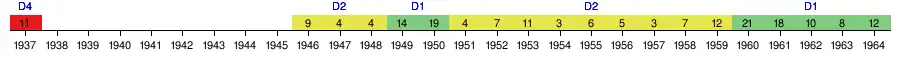 | 1993–94 | 8 | 30 | 11 | 7 | 12 | 37 | 11 | 29 | QF | - | ||||
