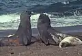New Zealand sea lion Phocarctos hookeri 'NZ' Coastal North and South Island Distinct lineage of the New Zealand sea lion once found all over the North and South Islands, as evidenced by ancient DNA studies on subfossil remains dating to just before 1280 CE.[26] It was hunted to extinction by the Maori within a few centuries. Afterwards, the subantarctic lineage of the New Zealand sea lion colonised Stewart Island and the southeastern coast of the South Island from the Auckland and Campbell Islands.[27] Male, females, and pup of the only surviving lineage, the subantarctic New Zealand sea lion