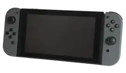 The Nintendo Switch is a video game console developed by Nintendo, for which games are released both in physical and digital formats. Physical games are sold on cartridges that slot into the Switch console unit.[1] Digital games are purchased through the Nintendo eShop and stored either in the Switch's internal 32 GB of storage (64 GB in the OLED version) or on a microSDXC card.[2] The Switch has no regional lockout features, freely allowing games from any region to be played on any system,[3] with the exception of Chinese game cards released by Tencent that play only on consoles distributed by Tencent.[4] Even after the release of the successor console, the Nintendo Switch 2, in 2025, games continue to be released on the original Switch console; the Switch 2 is backward compatible with most of the Switch games.