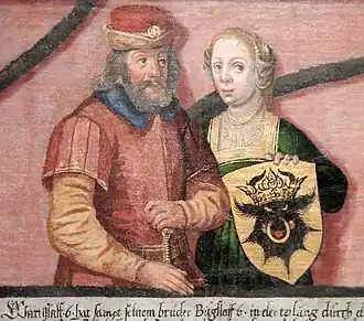 | Vislav III | | 1265 First son of Vislav II and Agnes of Brunswick-Lüneburg | 29 December 1302 – 8 November 1325 | Principality of Rügen | Margaret c.1305 no children Agnes of Lindow-Ruppin 1310 three children | 8 November 1325 aged 36-37 | Children of Vislav II, ruled jointly. After their childless deaths, the principality was annexed to Pomerania-Wolgast. |