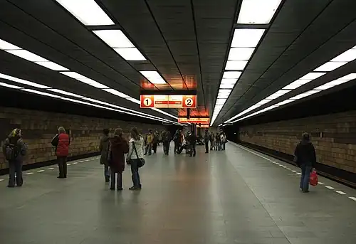 | Můstek | | New Town | The former medieval bridge (Můstek is the diminutive form of most, meaning "bridge") over the old town moat; the remains of the bridge can be seen at the station entrance. | AB | August 12, 1978 A November 2, 1985 B | located under Wenceslas Square |