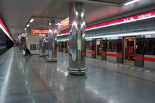 | Rajská zahrada | | Černý Most | — | B | November 8, 1998 | means Paradise Garden in English Side platforms unorthodox design (trains are on a different level) Czech Construction of the Year for 1999 |