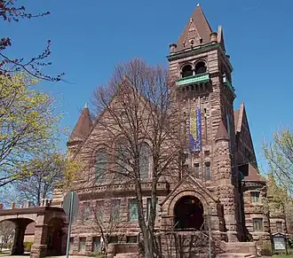 | First Presbyterian Church (Rochester, New York) | | 1871 built 1973 NRHP-listed | 101 S. Plymouth Ave. 43°9′10″N 77°36′56″W / 43.15278°N 77.61556°W / 43.15278; -77.61556 (First Presbyterian Church (Rochester, New York)) | Rochester, New York | Gothic, designed by Andrew J. Warner |