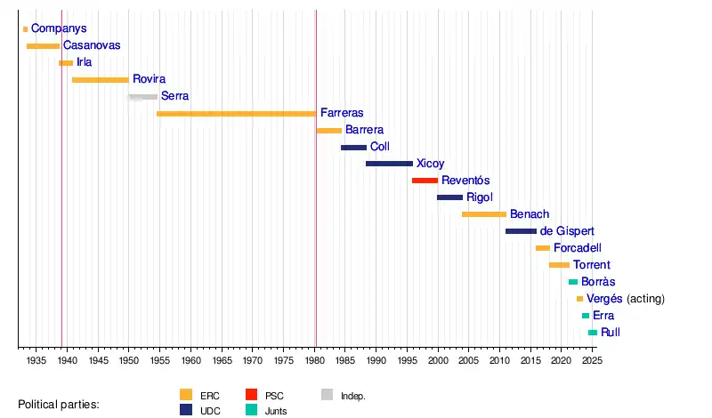| 3 | Josep Irla | | ERC | 18 August 1938 | 15 October 1940 | ||