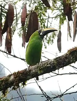 - ^ BirdLife International (2016). "Aulacorhynchus albivitta". IUCN Red List of Threatened Species. 2016: e.T42611196A95138483. doi:10.2305/IUCN.UK.2016-3.RLTS.T42611196A95138483.en. Retrieved 18 November 2023.