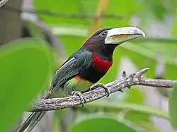 - ^ BirdLife International (2016). "Pteroglossus torquatus". IUCN Red List of Threatened Species. 2016: e.T22726200A94914704. doi:10.2305/IUCN.UK.2016-3.RLTS.T22726200A94914704.en. Retrieved 23 December 2022.