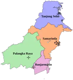 Catholic dioceses in Indonesia are grouped into 10 ecclesiastical provinces, consisting of 10 archdioceses and 28 suffragan dioceses and 1 military ordinariate. The bishops who lead each ecclesiastical region are members of the Bishops' Conference of Indonesia (BCI).