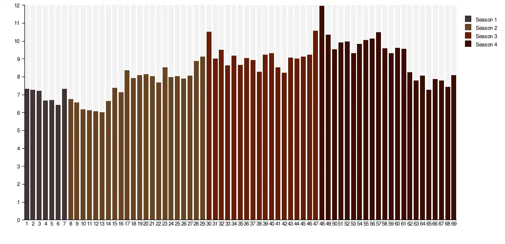| 7 | 18 | October 5, 2017 | April 19, 2018 | 53 | 7.41[8] | |