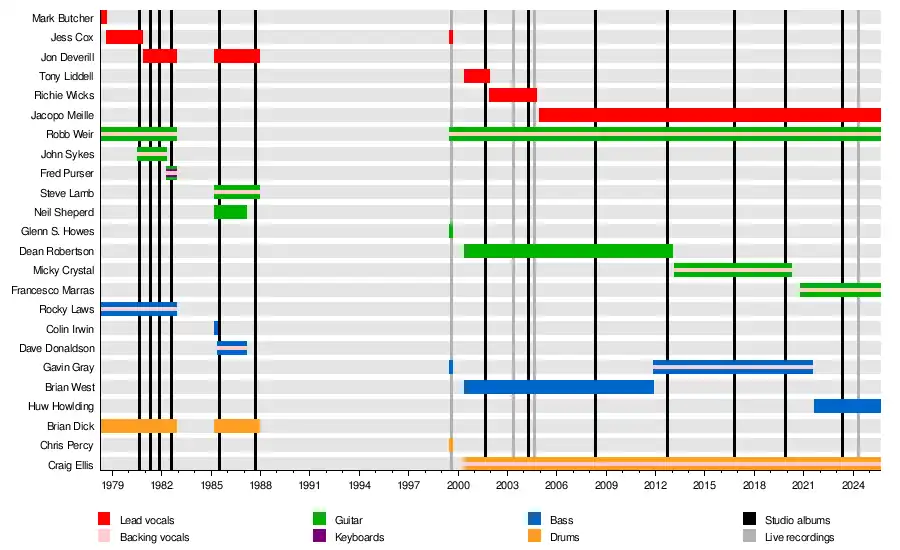 Micky Crystal departed in March 2020,[18] followed by Gavin Gray in July 2021.[19] Their replacements have been Francesco Marras and Huw Howlding (also ex-Blitzkrieg) respectively.[20][21]