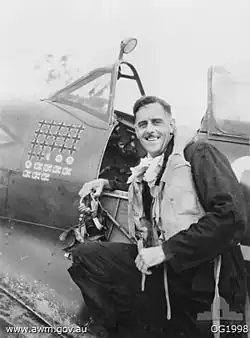 This is a list of fighter aces in World War II from Australia. An "ace" is generally considered to be any pilot who has downed five or more enemy aircraft, though the term has never been officially adopted by the Royal Australian Air Force (RAAF).[1] Accordingly, the numbers of victories attained by its fighter pilots were not routinely publicised by the RAAF during the war.[2] Historians have gleaned figures from combat reports, unit histories, personnel records, and award citations, which sometimes recorded the pilot's tally of victories at the time the decoration was recommended. The top-scoring Australian ace of World War II, Clive Caldwell, is generally credited with 28½ victories, that is 27 solo "kills" and three shared, or a total of 30 if shared victories are counted as one each.[3][4] His total was almost twice that of the second-highest scoring Australian ace, Adrian Goldsmith, with 17.[3][5]