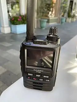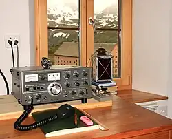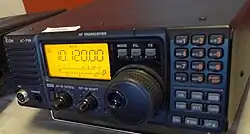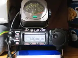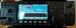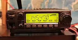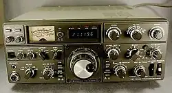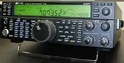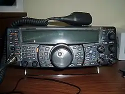 The Kenwood TS-2000 is an amateur radiotransceiver manufactured by the Kenwood Corporation.[24][25][26] Introduced in the year 2000, the radio was known for its "all-in-one" functionality. It can transmit on all amateur radio bands between 160 meters and 70 centimeters, with the exception of the 1.25 meters band, and the "X" model also has built-in 23 centimeters band capability option. Kenwood discontinued production of the TS-2000 in September, 2018.[27]