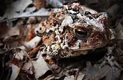 | Bufo fowleri | Fowler's toad | Adults are 2 to 3.5 inches (5.1 to 8.9 cm) long with warty brown skin. |