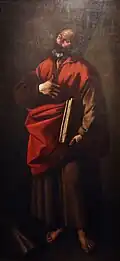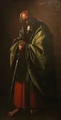 An apostolado (from Spanish; lit. 'apostolate'), or apostles series,[1] is a series of individual portrait paintings of the apostles of Jesus Christ, sometimes including other figures, such as Jesus, Luke, Mary, and/or Paul.[2][3][4][5] The first potential example of an apostolado stems from a pair of portraits of the apostles James the Elder and Philip by Albrecht Dürer in 1516, which he may have intended as a full series of twelve.[6][7] In Spain, apostolados are a prevalent genre of art of the apostles,[8] being popularized by Greco-Spanish painter El Greco[9] and leading to other renowned artists of the genre such as Francisco de Zurbarán,[10] Peter Paul Rubens,[11] and Anthony van Dyck.[12] Images of saints, and therefore the apostles, became popular in Catholic Europe during the Renaissance as a result of the Counter-Reformation, which in turn derived from a heavy emphasis of the Catholic doctrine of intercession of saints and opposition to Protestant iconoclasm.[13][14]