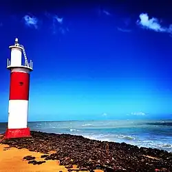 The Rio Grande do Norte coast is 410 kilometres (250 mi) long and is located on the northeasternmost tip of the South American continent.[2] In the state are located dozens of beaches, from virgin to urban ones, and famous for its dunes and cliffs.[3]