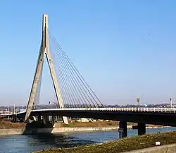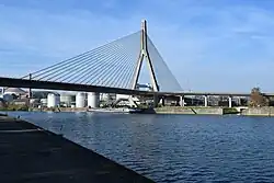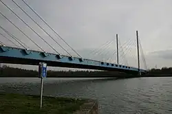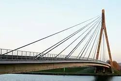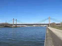 ![]() | Pont de Wandre | 168 m (551 ft) | 527 m (1,729 ft) | Cable-stayed Concrete box girder deck, concrete pylon 144+30+168 | 1989 | Herstal–Wandre 50°40′23.1″N 5°38′40.5″E / 50.673083°N 5.644583°E | Liège | [S 15] | |