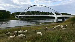 ![]() | Zutendaal Bridge (2019) | 128 m (420 ft) | 128 m (420 ft) | Arch Steel tied arch Bow-string bridge | 2019 | Zutendaal 50°54′49.3″N 5°32′23.2″E / 50.913694°N 5.539778°E | Limburg | [S 24] | |