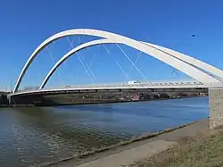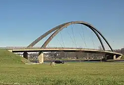 ![]() | Milsaucy Bridge | 144 m (472 ft) | 144 m (472 ft) | Arch Steel tied arch Bow-string bridge | Road bridge Albert Canal | 1990 | Liège 50°39′58.8″N 5°38′24.4″E / 50.666333°N 5.640111°E | Liège | [S 21] |