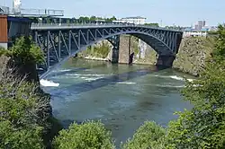 This part lists all the former bridges which succeeded one another on the Niagara River between the towns of Niagara Falls, Ontario, and Queenston in Canada and Niagara Falls, New York, and Lewiston, in United States. The Whirlpool Rapids Bridge (1897), the Rainbow Bridge (1941) and the Lewiston–Queenston Bridge (1962), still in service are listed in the Major road and railway bridges part above.