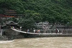 ![]() | 28 | Chajiaotan Bridge | 习古高速赤水河大桥 | 1,200 m (3,900 ft) | 2,009 m (6,591 ft) | Suspension Steel truss deck, concrete pylons | 2019 | Xishui County–Gulin County 28°09′57.3″N 106°08′07.2″E / 28.165917°N 106.135333°E | Guizhou Sichuan | [59] | |