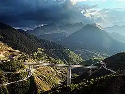 ![]() | 25 | Greveniotikos Bridge | Γέφυρα Γρεβενών | 100 m (330 ft)(x8) | 960 m (3,150 ft) | Box girder Prestressed concrete Twin bridges 60+8x100+60 | Grevena 40°05′35.5″N 21°27′16.8″E / 40.093194°N 21.454667°E | Western Macedonia | [S 27] [51] [44] | ||