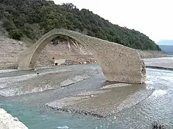 | 11 | Korakou Bridge destroyed in 1949 | Γεφυρα Κορακου | Span : 45 m (148 ft) | 62 m (203 ft) | Masonry 1 segmental arch | Footbridge Achelous River | 1540 | Pigés 39°17′53.7″N 21°25′02.3″E / 39.298250°N 21.417306°E | Epirus | [13] [14] [15] | |