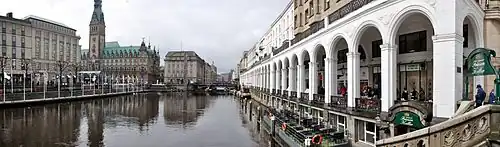 ![]() | Reesendammbrücke 53°33′7″N 9°59′39″E / 53.55194°N 9.99417°E | 1844[4] | 47 m (154 ft) | Neustadt, Altstadt | designed by Johann Hermann Maack, carries the Jungfernstieg | |||