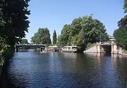 ![]() | Schwanenwikbrücke 53°33′56″N 10°1′1″E / 53.56556°N 10.01694°E | 1878[4] | 55 m (180 ft) | Hohenfelde, Uhlenhorst | designed by Franz Andreas Meyer | |