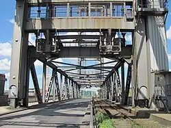 | Kattwykbrücke 53°29′40″N 9°57′6″E / 53.49444°N 9.95167°E | 1973 | 290 m (950 ft) | Moorburg, Wilhelmsburg | the world's tallest lift bridge, with a liftable height of 46 m (151 ft) | ||