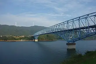 ![]() | 39 | Tenjō Bridge | 天城橋 | 348 m (1,142 ft) | 465 m (1,526 ft) | Arch Steel through arch | Misumi-Oyano Road Misuminoseto Strait | 2018 | Uki - Ōyano-jima 32°36′43.2″N 130°27′32.5″E / 32.612000°N 130.459028°E | Kumamoto | [30] |